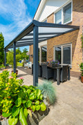 Because of our modular system, the possibilities with the Bosco are endless and suitable for every situation and every style. It’s available in the colours RAL9005, RAL9016, RAL7024 and RAL9001. For the polycarbonate roofing, you can choose from clear, ultra clear, opaque and solar control. Optionally, this veranda can be fitted with various accessories, such as a side gable, sidewall, glass sliding doors or LED lighting.