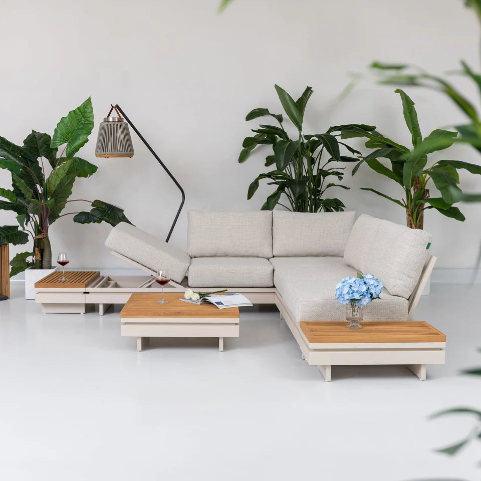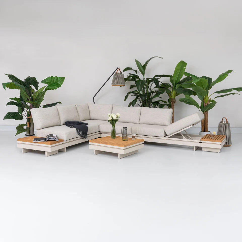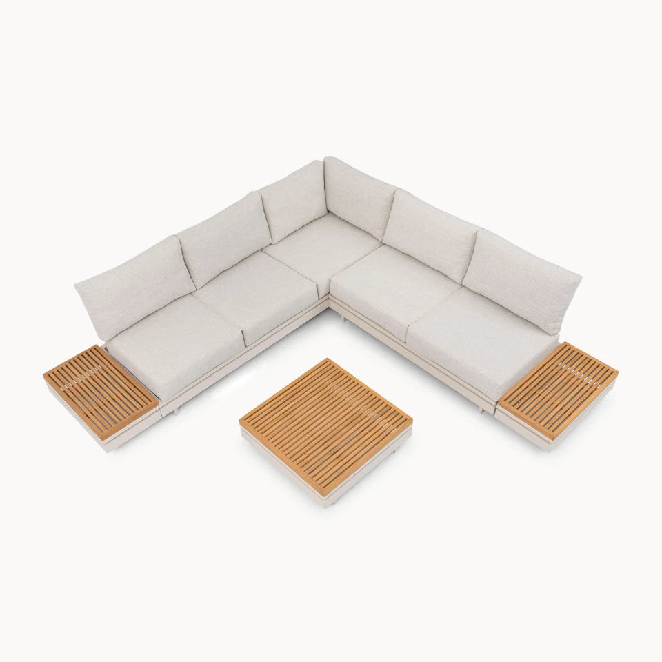 Aluminium Wood Corner Sofa Lounging Set in Pebble