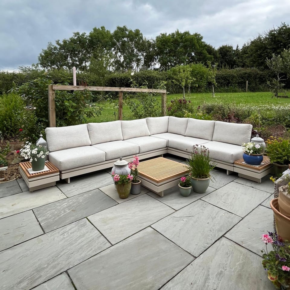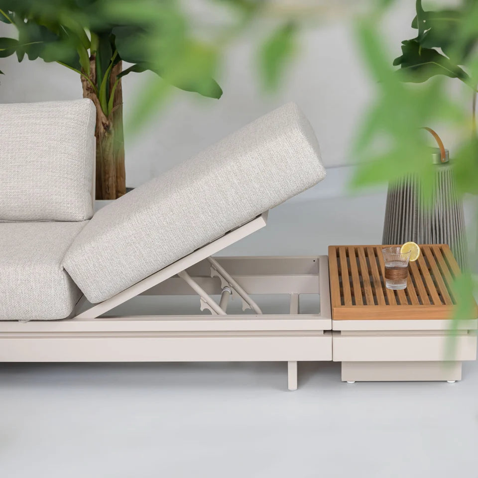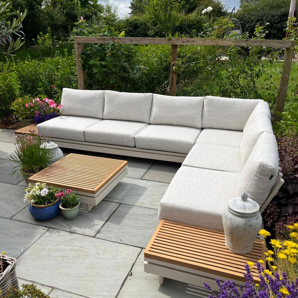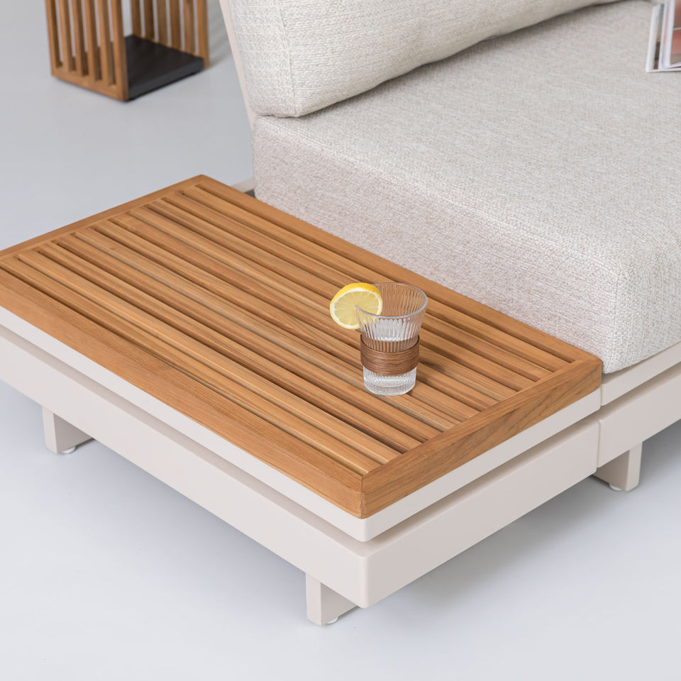 Aluminium Wood Corner Sofa Lounging Set in Pebble