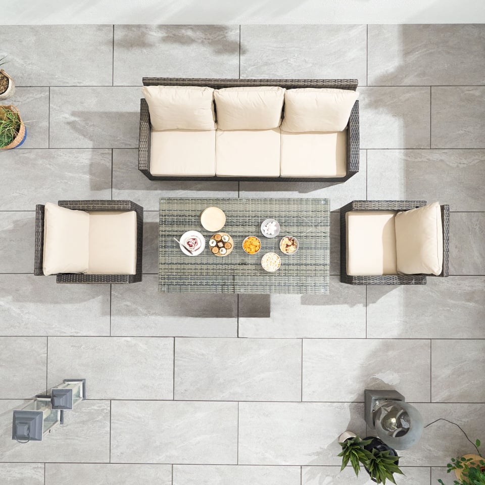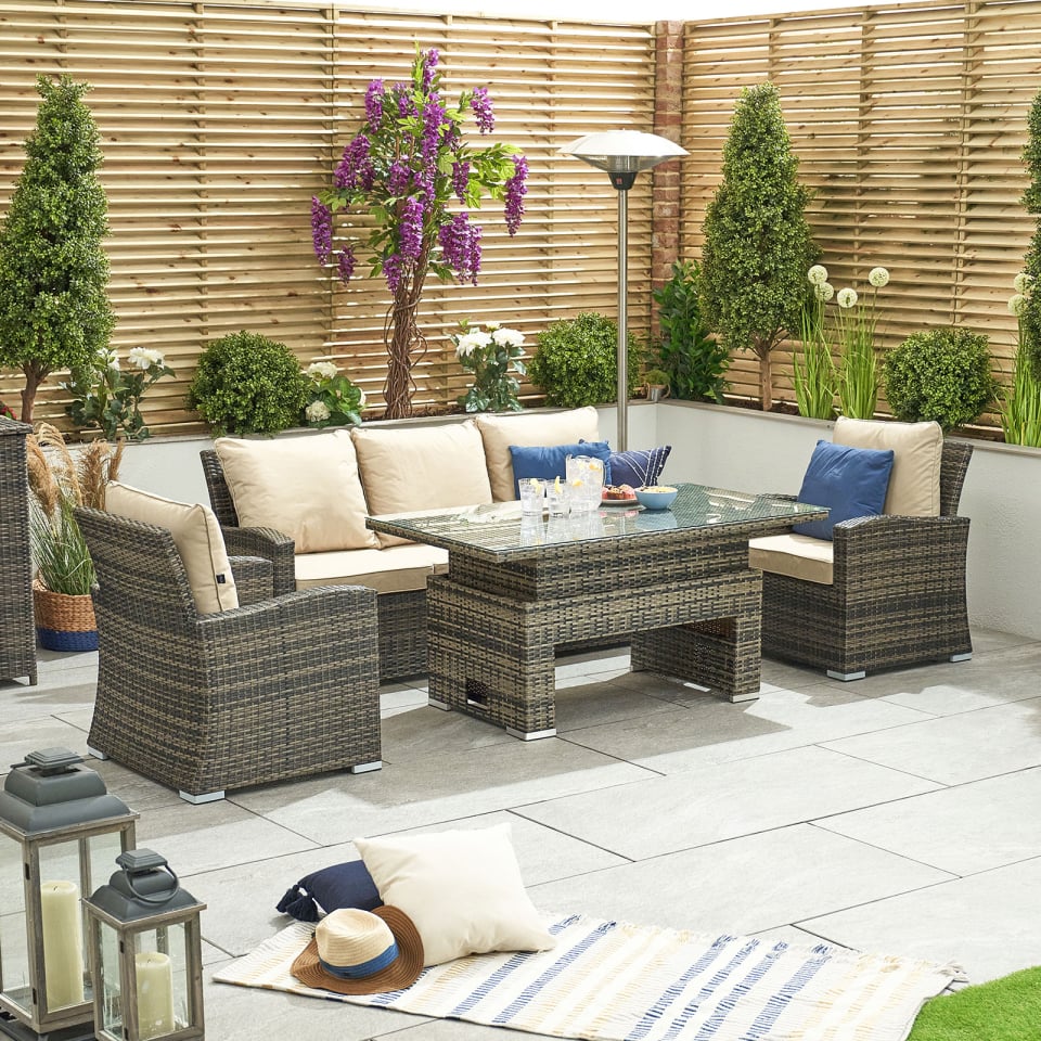 3 Seater Rattan Lounge Dining Set with 2 Armchairs