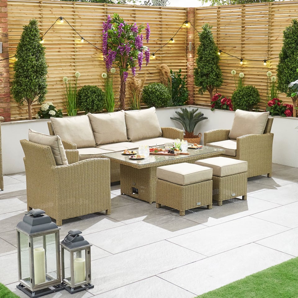 3 Seater Rattan Lounge Dining Set with 2 Armchairs
