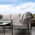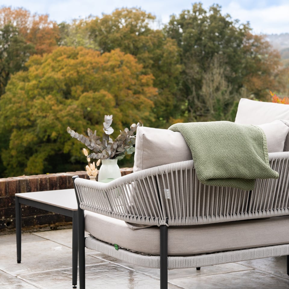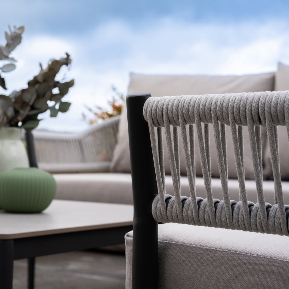 Designed to enhance both suburban and country gardens, the Daisy collection allows you to create your ideal patio setup, whether for al fresco dining or sun-soaked relaxation. This set features beautifully crafted seating with intricate rope detailing, wrapped around a sleek and durable aluminium frame. The sophisticated design ensures lasting quality, making it a stylish and practical choice for outdoor living.