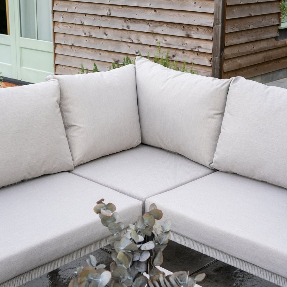 Introducing the Daisy Corner Sofa Lounging Set with Square Coffee Table—a charming blend of elegance and versatility for your outdoor space.