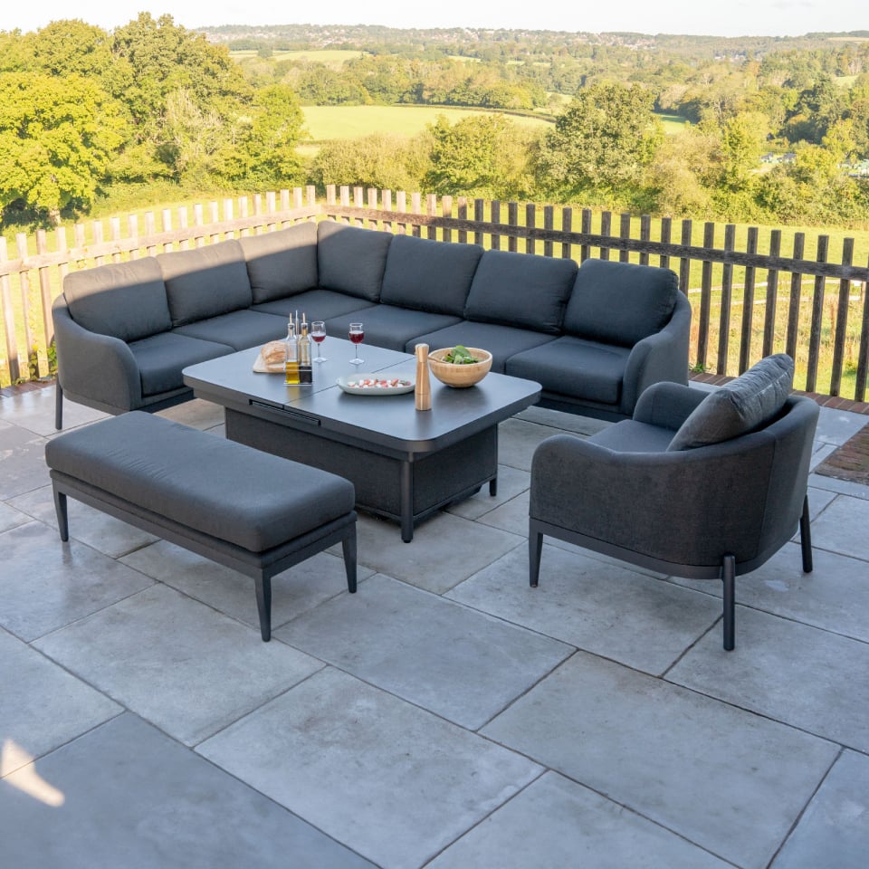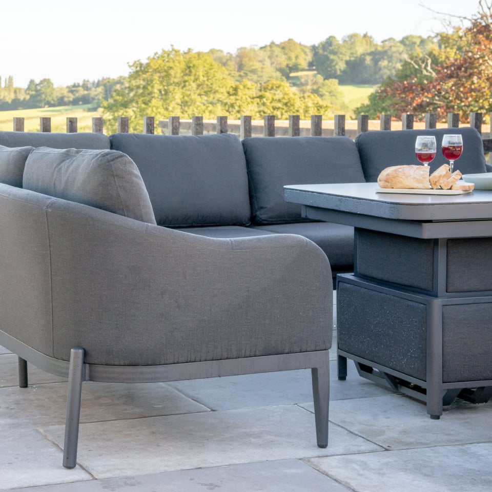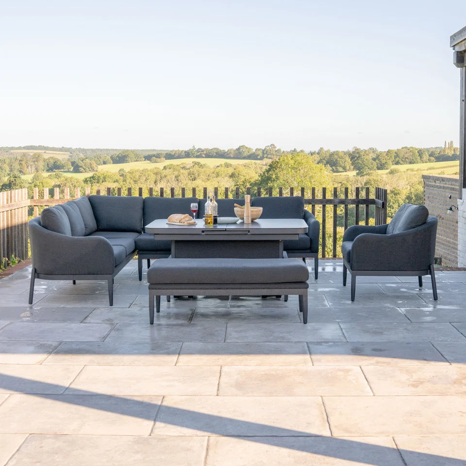 Duke Left Hand Grande Corner Lounge Dining Set with Extending Gas Lift Rising Table – Charcoal Grey