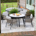 Elevate your outdoor experience with the elegant Sophia Dining Set, designed for blissful days and nights spent under the open sky. Whether you’re sharing a family meal or enjoying relaxed evenings with friends, this collection seamlessly blends style and comfort for any garden setting.