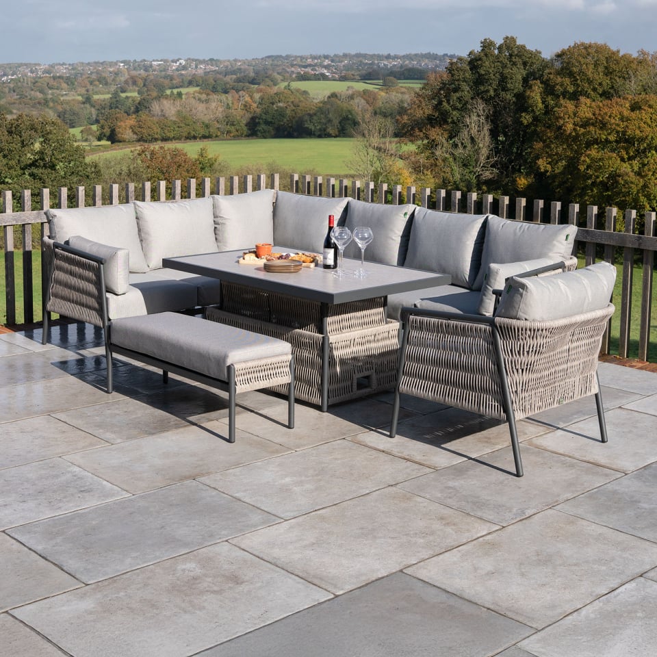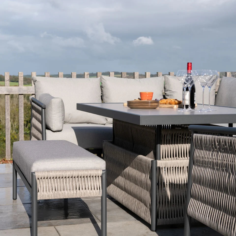 Sophia Left Hand Corner Sofa Dining Set with Bench, Armchair & Rectangular Rise & Fall Table