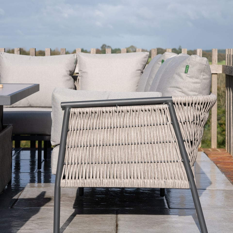 Introducing the Sophia Left Hand Corner Sofa Dining Set, a perfect blend of style, comfort, and versatility for your outdoor space. Whether you’re hosting a family meal or enjoying a cozy evening under the stars, this collection has everything you need to transform your garden into an inviting and stylish retreat.