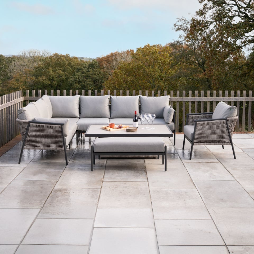 L-Shaped Corner Rattan Aluminium Lounge Dining Set